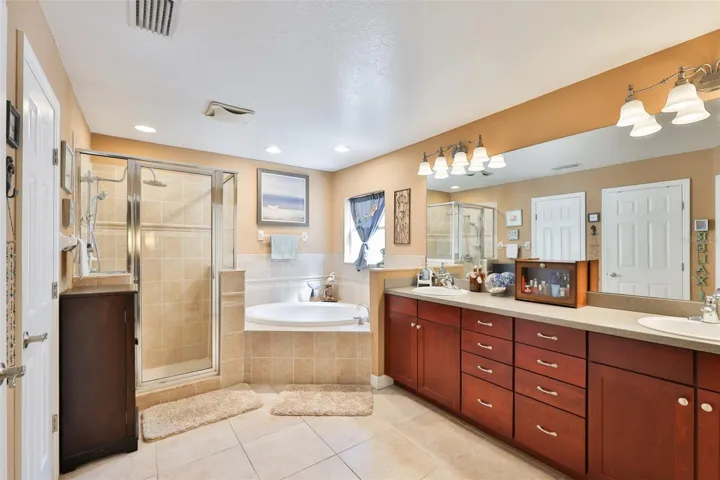 Upstairs, a spacious bonus room offers endless possibilities as a media room, playroom, gym, or additional lounge area. The primary suite is a private retreat featuring a walk-in closet and en-suite bath with dual vanities, a soaking tub, and separate walk-in shower.