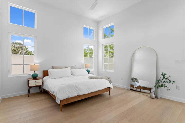 Located in the heart of St. Petersburg’s coveted Historic Old Northeast, with tranquil water views of Coffee Pot Bayou, this architecturally refined residence by MTBH — Modern Tampa Bay Homes — represents a rare intersection of contemporary design and one of the city’s most established neighborhoods. Completed in October 2021, the home spans 3,164 square feet on an 8,368-square-foot lot and offers four bedrooms and four and a half baths, thoughtfully composed beneath soaring ceilings and a clean, modern silhouette.