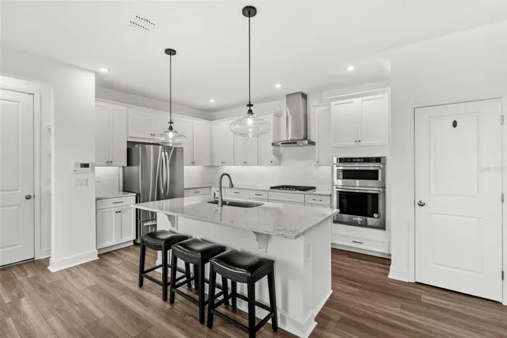 MOVE-IN READY ANNA MARIA floorplan with UPGRADES! Step into a light-filled, open layout designed for both everyday living and entertaining. The gourmet kitchen is a standout feature, complete with a gas range and ample space for cooking, gathering, and hosting with ease. Throughout the home, you’ll appreciate no carpet flooring, providing a clean, contemporary feel and low-maintenance living.This home is designed to extend your living space outdoors with two stunning exterior areas a covered lanai perfect for relaxing evenings and a charming wrap-around porch ideal for morning coffee or entertaining guests.The primary suite offers a peaceful retreat with neighborhood pond views, while additional bedrooms provide flexibility for family, guests, or a home office.