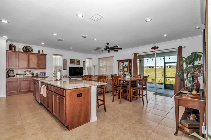 Introducing the esteemed Ginger Floorplan, offering an unparalleled blend of sophistication and comfort within the gated community of On Top Of The World. Step into luxury with this meticulously crafted residence boasting 2 bedrooms, 2 bathrooms, and a versatile den, complemented by a spacious 2-car garage. The residence is thoughtfully designed to embrace natural light, creating an ambiance of openness and warmth throughout. Nestled in a private enclave, the backyard retreat beckons with serene vistas overlooking a tranquil dry retention area, providing a peaceful oasis for relaxation and entertainment. Indulge your culinary passions in the gourmet kitchen, appointed with a central island, elegant granite countertops, premium backsplash, and stainless steel appliances, elevating every culinary experience. Elegant crown molding adorns the entry and expansive great room, adding a touch of refinement to the living space. The master bathroom embodies modern luxury, featuring exquisite tile and glass accents, along with a convenient double vanity. Throughout the home, updated fans and fixtures provide both style and functionality. Residents of the On Top Of The World community enjoy an array of world-class amenities, including a dog park, veterans park, clubhouse, golf, and various recreational facilities such as basketball, baseball, archery, and tennis courts, along with a community garden and more. The HOA fee encompasses essential services such as basic internet, trash removal, grounds maintenance, and periodic exterior maintenance, ensuring a hassle-free lifestyle. Conveniently located just a short distance from shopping, recreational centers, Veteran’s Park, and other local attractions, this residence offers unparalleled convenience and accessibility. Schedule a private showing today to embark on your journey towards refined living.