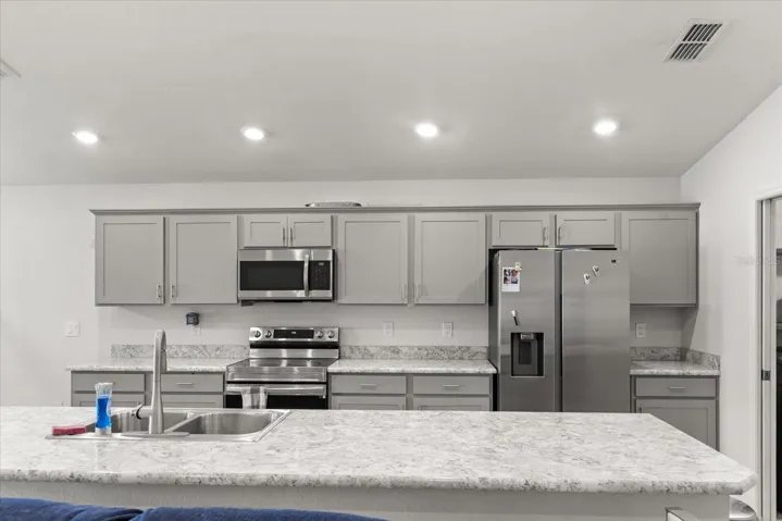 The home features an open-concept layout connecting the living, dining, and kitchen areas, providing a functional space for everyday living and entertaining. The kitchen offers ample Cabinetry and Workspace, Custom Pantry and LVP flooring. A split-bedroom floor plan provides added privacy, with the primary suite situated separately from the secondary bedrooms. The additional bedrooms are generously sized, and the flex/den space can be used as an office, guest room, or additional living area. Both bathrooms include modern fixtures consistent with the home’s newer construction. Additional features include block and stucco construction, a shingle roof, slab foundation, and a 2-car attached garage. The property sits on a 5,500+ square foot lot with manageable outdoor space. Conveniently located near major roadways, shopping, dining, and the Lake Myrtle Sports Complex. The community offers low HOA fees and no CDD. This property presents an excellent opportunity for homeowners and investors alike. Whether you’re looking for a primary residence, a newer build with modern features, or an investment in a rapidly developing Central Florida market, this home delivers the perfect combination of space, functionality, and long-term value. Contact me for a private showing!