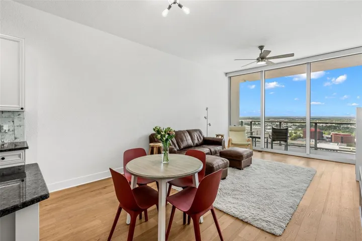 Welcome to The Vue—where elevated high-rise living meets modern comfort in the heart of Downtown Orlando. This beautiful 32nd floor two-bedroom, two-bathroom condominium offers an open-concept layout designed to capture stunning skyline views and unforgettable sunsets through expansive floor-to-ceiling windows in the main living areas and owner’s suite . The kitchen features wood cabinets, granite counters, a breakfast island and a full suite of new stainless steel GE Profile appliances, including a 29 cu. ft. refrigerator, gas range with dual ovens, dishwasher, and a microwave with convection and air-fry capabilities—ideal for entertaining. The primary bedroom’s ensuite is sure to please with dual walk-in closets, garden tub and separate shower. The laundry area includes new GE Cafe front-load washer and ventless condenser dryer. There’s even a newly installed REME HALO HVAC air filtration system. Which, for allergy sufferers, ensures a cleaner, healthier indoor environment. Step out onto your balcony to enjoy views that stretch across the city to the Disney fireworks and stadium events.