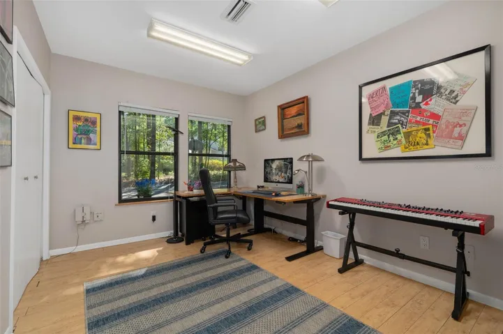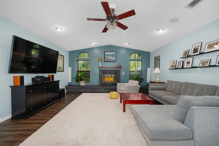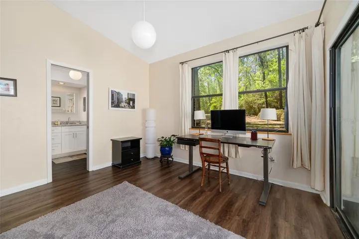 Beautiful and Spacious POOL Home on TWO ACRES in the lovely Fort Clarke Forest neighborhood. This 4-Bedroom/3-Bath Home, with Office, which could be used as a 5th bedroom, is located along the most scenic portion of the SW 91st Street corridor with easy access to Newberry Road and SW 8th Avenue. The Property is very close to Shopping and the Hawkstone Country Club. It has a NEW ROOF, Fully-Updated Kitchen and Owner’s Bathroom, and other bathroom updates. The bedrooms are on either sides of the living areas. The Living Room, Open Family Room/Kitchen, Owner’s Suite and one other Bedroom (on the opposite side of house), all open up to the Screened-In Pool “Deck” that has covered living areas. The Living Room and Family Room have vaulted ceilings; there is a Wood-Burning Fireplace in the Family Room and a new Skylight in the Kitchen. An inside Laundry Room with sink and cabinets is connected to a hallway with oversized storage closets and the Office. In lieu of a garage, there is a large multi-purpose room that can be used as a workshop or for inside storage and separate tool storage area. There is also an outdoor Shed. The lot is beautifully landscaped and the setting is very private. One of two Water Heaters was very recently replaced. Schedule your tour today!