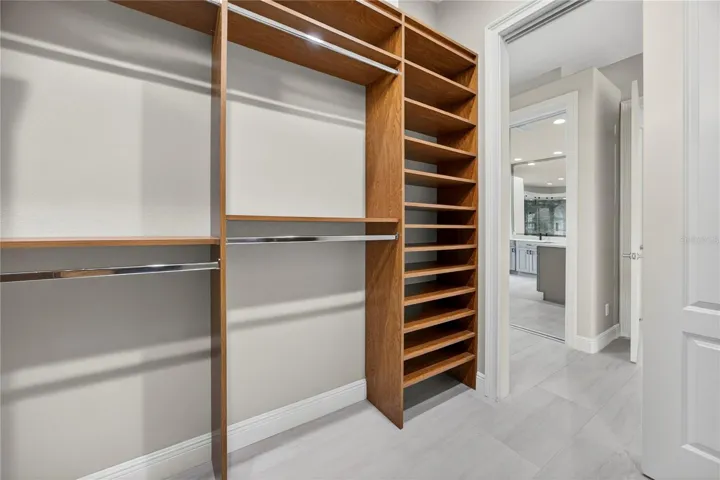 The primary suite offers a luxurious private retreat with a tray ceiling, direct access to the pool area, and a beautifully designed walk-in closet with built-ins. The spa-inspired primary bathroom includes linen closets, a separate walk-in shower, a freestanding marble tub imported from Europe, quartz countertops, custom vanities, and a private water closet.