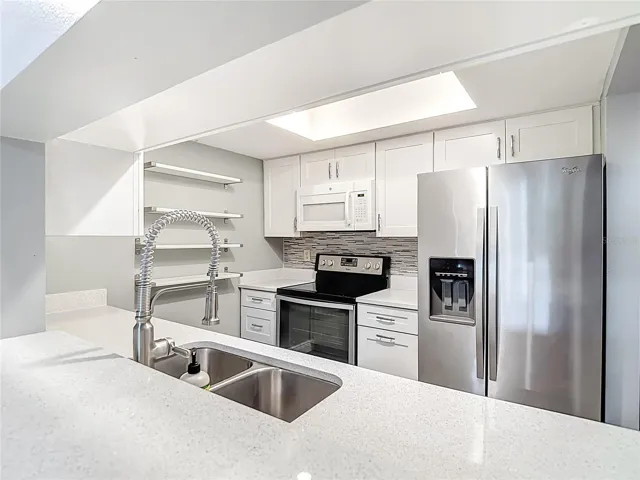 Updated Countryside Condo, 2/2, Carport, Secure Bldg. Entrance NEWLY PAINTED BEDROOMS!! Welcome to your 2 bedroom 2 bath 955 sq ft, dream condo, perfectly situated within walking distance to the vibrant shopping destinations of Countryside Mall, Countryside Center, and Cypress Point Shopping Center. Or if you prefer to drive you also have an assigned carport where you can park your car and unload your haul without getting wet in the Florida rain. This Condo is in a 55+ Bldg. but not all buildings in Inverness Condos are 55+ which makes this location a wonderfully active and diverse place to live! This buildings safety features include front door call box for visitor access, all concrete building, no flood zone, has a new elevator and all milestones have been completed with no repairs required. The corridors are also very wide and accommodating for moving furniture, ADA compliant and decorating if you like to go all out around the holidays. Each floor features a garbage chute so there’s no lugging trash up and down the elevator or stairs. COA monthly fees will be $463.00 for 2026 INCLUDED IN COA Cable/High Speed Internet, Water Trash Removal Your new home features an updated kitchen with quartz counter tops, new tile floor, lighting, breakfast bar, stove, microwave, refrigerator, dishwasher, trash drawer, plenty of cabinets, and counter top space. In the hallway across from the kitchen is a phenomenal kitchen pantry with roll-out drawers to store all of your culinary favorites. Your large living room features high ceilings, remote controlled ceiling fan, Smart AC Thermostat, natural light from the new impact windows with tip out feature which makes them easy to clean, and sliding doors that lead to the screened lanai that overlooks the pool. Your primary bedroom has an ensuite bathroom with shower, walk-in closet (with attic access for extra storage which is hard to find in a condo), remote controlled ceiling fan, and a screened patio overlooking the pool. Your second bedroom also has a walk-in closet, remote controlled ceiling fan, and a sliding glass door that gives full access to the lanai and a full bathroom located just across the hall. Your screened lanai with ceiling fan, overlooks the pool, and also houses your stackable front load washer and dryer. So whether you are having your coffee or folding your clothes you can still enjoy the view. Your condo has ADA features in the bathrooms with grab bars in both the shower and tub. Your condo is also equipped with stylish honeycomb blinds that enhance privacy and temperature control while allowing natural light to brighten your home. Your condo has wood laminate flooring throughout and new tile in bathrooms and kitchen. Service Animals Allowed, Having a get together with friends, there is ample guest parking, so call all your friends! As an added bonus, all appliances convey with the property, and all remaining furniture and shelving in the pictures will stay unless you prefer them to be removed. Don’t miss this incredible opportunity to make this beautiful condo your new home, with its perfect blend of low monthly cost, style, modern updates, and an unbeatable location. Schedule a showing today and envision the lifestyle that awaits you!