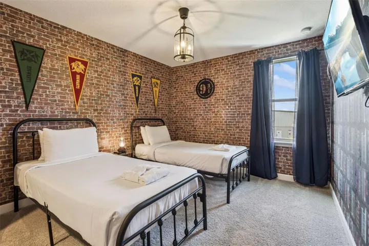 This beautiful, two-story luxury vacation home features four bedrooms and 4.5 baths, just minutes from Walt Disney World Resort. This fully furnished property offers a bright open floor plan with a spacious living room, dining area and a modern kitchen equipped with all appliances and a breakfast bar perfect for entertaining. High-quality cabinets and furniture. Each bedroom includes its own ensuite bath, providing comfort and privacy for residents and guests. The home showcases charming Disney-inspired décor throughout, creating a unique and memorable experience ideal for short-term rentals or personal use. Step outside to your private backyard oasis features a pool and an outdoor seating area perfect for relaxing or hosting gatherings. Additional highlights include a convenient in-home laundry room and ample natural light throughout. It is located in a well-maintained, gated community with access to a clubhouse and resort-style pool. Prime location near Walt Disney World, shopping, dining and entertainment, makes this property an excellent opportunity as a vacation home, primary residence or income-producing investment. Schedule your private showing today!