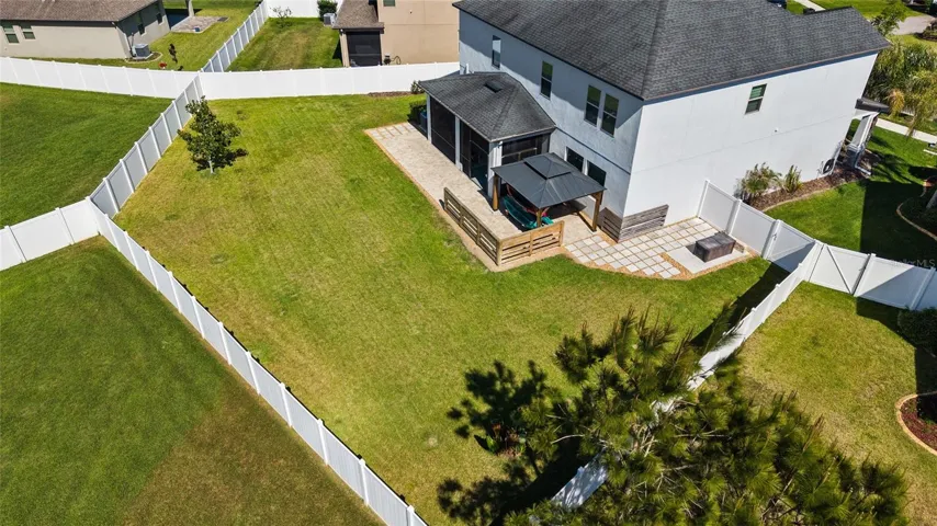 Outside through the sliding glass doors is the screened in lanai, which overlooks the oversized backyard. A custom built paver patio with gazebo and uplighting is perfect for a hot tub or potential pool.