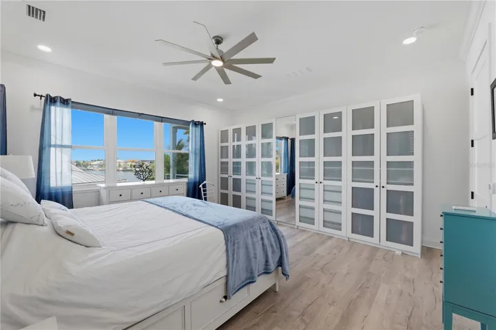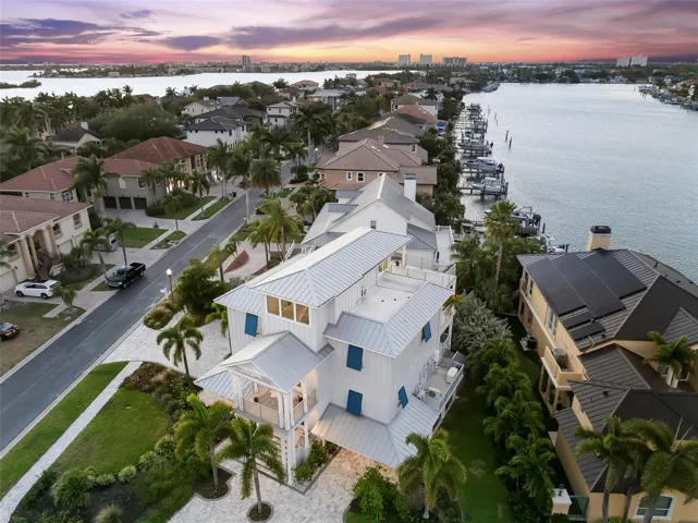 Inspired by the effortless elegance of Barbados, this exceptional coastal retreat blends refined design with a focus on light, views, and seamless indoor-outdoor living. Clean lines, a soft coastal palette, and British-influenced symmetry create a timeless coastal aesthetic, all set within the gated Pasadena Yacht & Country Club—Pinellas County’s only gated, waterfront and golf course community. Ideally positioned on a spacious corner lot, the home is surrounded by lush tropical landscaping designed for Florida’s coastal environment. A thoughtfully designed reverse floor plan maximizes each level and panoramic water views, with an elevator providing access to all levels— and a floor plan ideal for multigenerational living. The top level showcases a stunning open living space with white tongue-and-groove pitched ceilings, wet bar, and sliding glass doors leading to a 27’ terrace with both covered and open-air areas—perfect for entertaining or relaxing. The main living level features a beautifully appointed kitchen with white shaker cabinetry, quartz countertops, GE Café appliances, and a breakfast bar overlooking the great room and terrace. The spacious primary suite offers a gorgeous en-suite bath and expansive custom closets. This well planned design also offers the opportunity of utilizing the second full bath as his and her primary baths! The first living level includes three additional bedrooms, two baths (including an en suite guest room), and a flexible second living area or office with access to another inviting terrace. Outdoors, the backyard provides a blank canvas for a custom pool design. Additional highlights include five terraces, a four-car garage, pre wired for EV charging, room for workshop and golf cart space, a whole-house generator, metal roof, hurricane windows, Leutron lighting, and 2 expansive paver driveways. For boating enthusiasts, Pasadena Yacht & Country Club also offers a protected 75-slip marina, with boat slips currently available for purchase—providing direct access to the Gulf and a true waterfront lifestyle. (Club membership available at an additional cost) A rare opportunity to enjoy elevated coastal living in one of the area’s most sought-after communities close to downtown St. Petersburg, Florida’s gorgeous, white sand beaches, and a short 35 minute drive to Tampa International Airport.