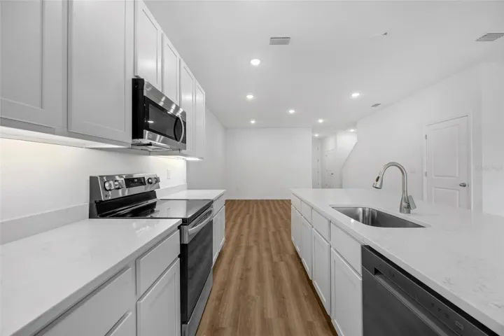 Quick Move-In! Welcome to Shenandoah Reserve, where low-maintenance living meets the best of East Orlando. Conveniently located near major highways, top dining, entertainment, and outdoor recreation, this community offers both comfort and accessibility. This Abbey townhome is a 3-bed, 2.5-bath interior floorplan that features a covered lanai, beautiful pond view, spacious upstairs loft, and modern design finishes throughout. From the moment you arrive, the two-car paver driveway and lead walk welcome you to the covered front porch, setting the tone for timeless curb appeal. Step inside through the impressive 8’ front door and experience soaring 9’4″ ceilings that enhance the open, airy feel of the main living space. Tile flooring throughout the first floor delivers both durability and modern style. At the heart of the home, the chef-inspired kitchen makes a bold and elegant statement with quartz countertops and 42” shaker-style Latte stained cabinetry. The spacious center island provides the perfect gathering space for entertaining or casual dining. A generous walk-in pantry ensures everything has its place. The kitchen flows seamlessly into the dining area and great room, creating a bright, open-concept layout designed for both entertaining and everyday living. A triple sliding glass door extends your living space outdoors to the expansive covered lanai—ideal for relaxing evenings, weekend gatherings, or enjoying Florida’s year-round sunshine. Upstairs, a spacious loft provides flexible living space perfect for a home office, media room, or play area. A large walk-in laundry room adds convenience, while two secondary bedrooms share a full bath. The private primary suite is thoughtfully positioned and features a generous walk-in closet and an oversized bath complete with a dual-sink vanity, private shower, and separate water closet for added comfort. Residents of Shenandoah Reserve enjoy low HOA fees, no CDD, and community amenities including a dog park, playground, walking trail, and gathering areas—all designed for relaxed, low-maintenance living. Ask about our closing cost incentives! DISCLAIMER: Photos and/or renderings are for illustrative purposes only and may depict upgraded landscaping, elevations, decorative features, or optional upgrades that may not be included in the home offered. Pricing, Incentives and Promotions are subject to change at anytime. Promotions cannot be combined with any other offer. Ask the Sales and Marketing Representative for details on promotions.