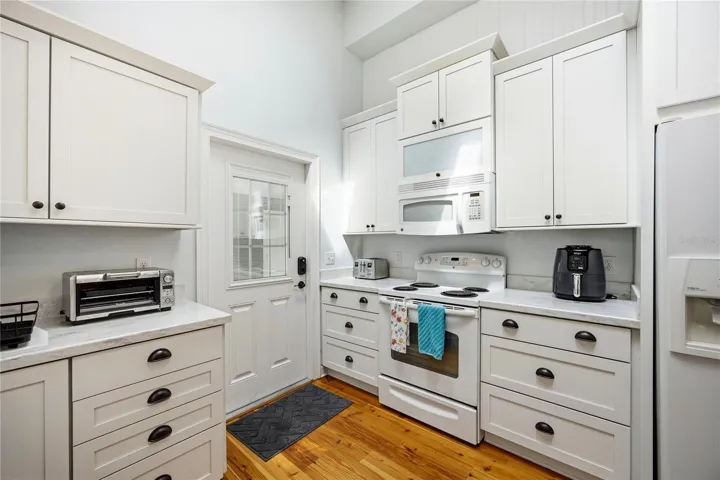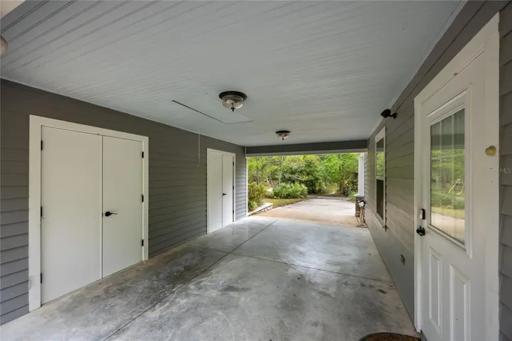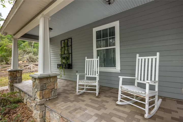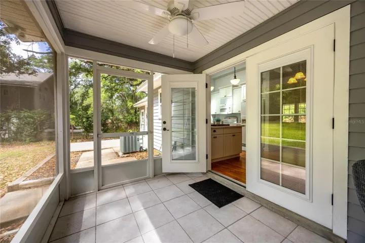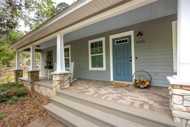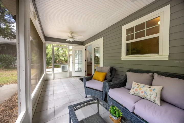 Welcome to this charming, fully-appointed two bedroom, two bath home. Enjoy the wooded drive with lush bamboo as you are greeted at the front with a circular drive, wide front porch, and beautiful Japanese maple tree. This custom built property is loaded with all the features and details that make a space functional and livable, yet enchanting. From the wood floors, to the high ceilings of the living room, to the cozy wood burning stove and custom wainscoting throughout the home, you will find something to love in every room. The kitchen area offers bright skylights with custom cabinets and a perfect spot to enjoy a home-cooked meal at your bistro table. Follow the hallway to the bedrooms and two baths at the other end of the house where both bathrooms feature classic, fresh white tile. The ensuite primary bath has accessible shower and sink features with custom locking medicine cabinet. From the primary bedroom, there is a gorgeous screened-in porch connecting the primary bedroom around to the kitchen/dining area. It is the perfect place to enjoy your morning coffee and wooded views of the backyard. Outside, you will find two storage closets attached to the carport (one closet is heated/cooled). You’ll love the privacy and seclusion while also enjoying short commutes to the HCA Florida Hospital just around the corner (opening May 5th) or easy access to Archer Road and I-75.