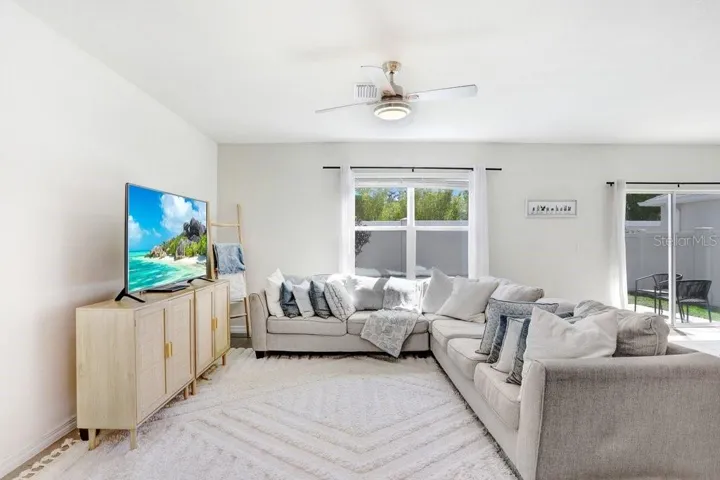 The fully fenced backyard provides a great space for outdoor enjoyment, pets, or entertaining.