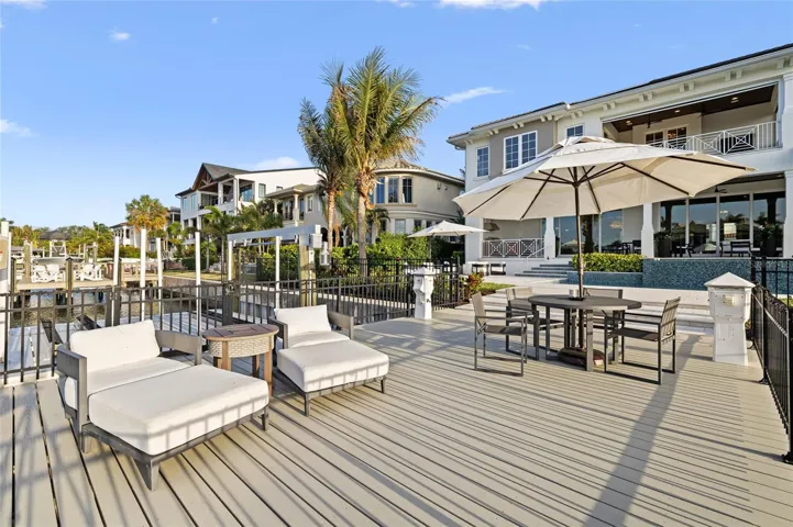 Outdoor living is equally impressive, with a covered lanai that seamlessly extends the interior living space and is complete with a fully equipped outdoor kitchen—ideal for enjoying Florida’s year-round lifestyle. Along the water’s edge, enjoy a 540-square-foot dock outfitted with a 13,000 lb Deco boat lift and a 6,000 lb jet ski lift accommodating two watercraft, providing the ultimate setup for boating enthusiasts.