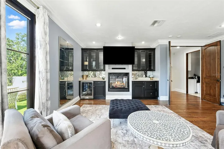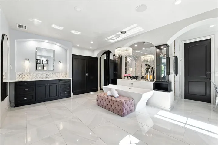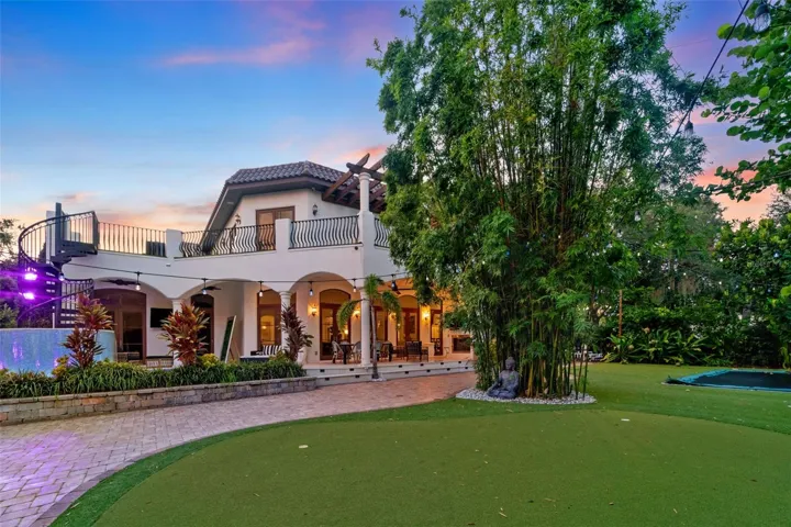 One or more photo(s) has been virtually staged. Welcome to 4555 W Swann Avenue – a showstopping Mediterranean estate nestled in Tampa’s prestigious Beach Park neighborhood. Built in 1925 and exquisitely renovated, this architectural masterpiece blends historic charm with unmatched modern sophistication. Situated on an oversized lot behind a gated circular drive with a centerpiece fountain, this home offers over 6,800 square feet of resort-style living. The home boasts 5 bedrooms, 5.5 full baths, multiple living spaces, and both upstairs and downstairs laundry rooms for optimal convenience. The 1,000+ sq ft primary suite is a true retreat, complete with a private sitting area, fireplace, wet bar, dual designer closets – including a custom purple-glam dressing room – and a spa-inspired bathroom with statement soaking tub, makeup vanity, and expansive walk-through shower. Step outside to your private paradise: a luxury pool with a cascading waterfall, glowing iridescent tiles, and ambient lighting, all framed by tropical landscaping and a mosquito misting system. Entertain in the fully equipped outdoor kitchen, or unwind on the 1,500 sq ft turfed balcony that seamlessly extends your living space outdoors. The turfed side/back yard is packed with family-friendly luxury, featuring an in-ground trampoline, putting green with lighted holes, a dog run, and a custom cat cave – a whimsical and functional retreat for your feline family member. Inside, the chef’s kitchen stuns with dual-tone custom cabinetry, a massive center island, walk-in pantry, and designer appliances. The open-concept living and dining area is anchored by arched windows and flooded with natural light. Additional highlights include a 700-bottle wine cellar, large downstairs en-suite guest bedroom, bonus room, and multiple living spaces with fireplaces and custom millwork. Located in a top-rated school district and designed for both everyday living and grand entertaining, this home also features a transferrable roof warranty and has had no flooding or hurricane damage (Milton or Helene). Experience the ultimate in design, functionality, and location – just minutes from Westshore, Hyde Park, Tampa International Airport, and the city’s finest shopping and dining.