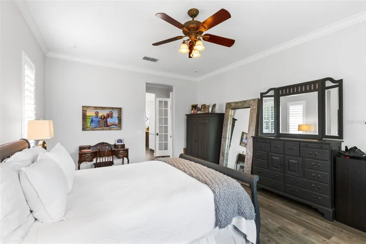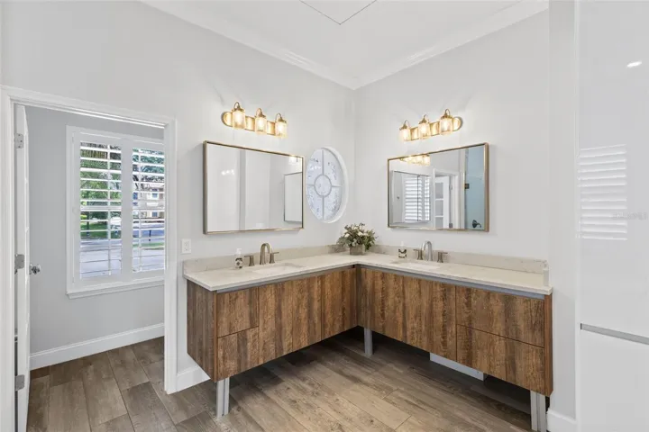 Timeless details like plantation shutters, crown molding, and a side entry three car garage (new doors 2024) elevate the home’s appeal and provide generous space for vehicles, plus additional storage or workspace.