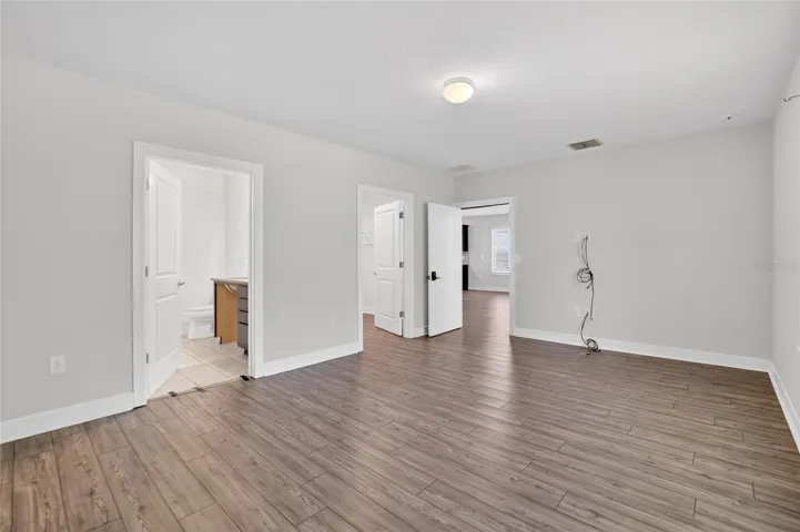 This truly unique property at 5536 Keaton Springs Drive in Lakeland, Florida offers a rare combination of thoughtful design, flexibility, and expansive living space. Featuring two bedrooms with an EXPANSIVE main living area perfect for entertaining, this home was intentionally designed with ADA adaptations to comfortably accommodate wheelchair use, including extra-wide doorways and a fully accessible primary bathroom with a ZERO-entry shower and open sink access. For those needing additional space, the option to easily add walls for a third bedroom makes this home incredibly versatile.