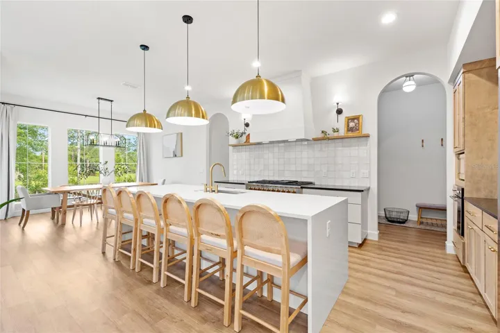 The kitchen anchors the home with a large island, Italian appliances, and clean, modern finishes that carry throughout. It’s set up to be both functional and visually sharp.