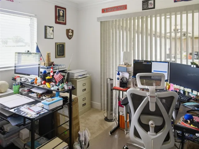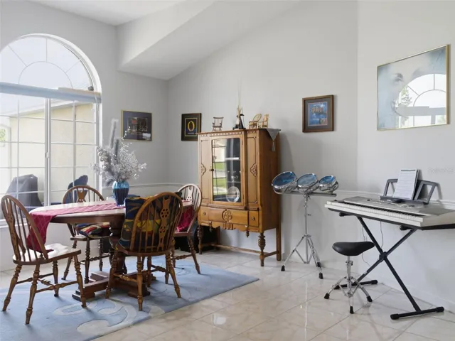 The Florida room lanai is the true highlight of the home—fully enclosed and lined with windows that showcase picturesque views of the 18th hole of a championship golf course. A paver patio just outside adds even more space to enjoy the outdoors.