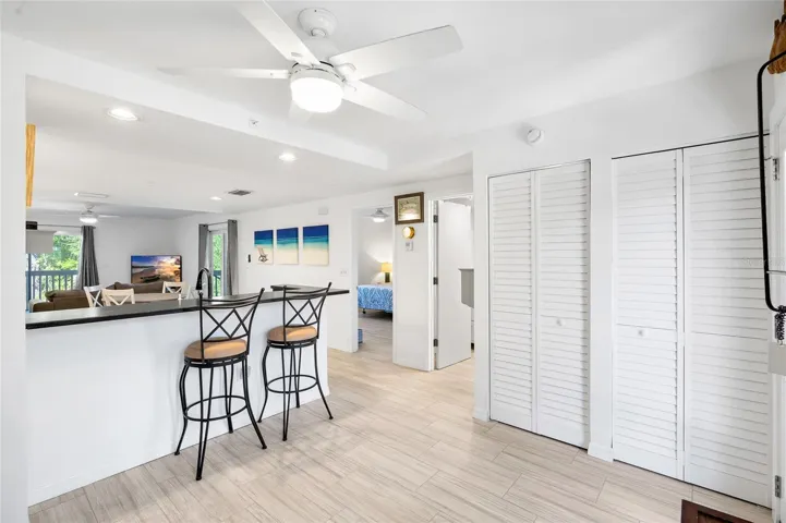 Your private island beach paradise awaits in this completely renovated condo at Placida Beach! Little Gasparilla Island is a bridgeless barrier island situated off the coast of the Cape Haze Peninsula accessible only by private boat or the condo’s private ferry. This bridgeless barrier island community of only 30 units across 5 buildings offers an hourly ferry service for owners, guests and secure mainland parking. The private community ferry ride will take you from Placida Harbour to your beautiful condo in approximately 10 minutes, where you have access to the private dock on the island. You can always bring your own boat or opt to lease a boat dock annually on the protected mainland Harbour to keep your boat there when you need it. Owners are permitted to rent their units for a minimum of 4 nights. This condo is turn-key; all the furnishings, ceiling fans, TV’s, are included, as is the king mattress in the Master bedroom. The kitchen cabinetry, sink, faucet fixture, beautiful leathered granite countertops, refrigerator, range, microwave, dishwasher and garbage disposal are all brand new. There is a newer stacking washer and dryer for your convenience in the front closet. This condo features beautiful new porcelain tile flooring throughout, including the bathroom. The bathroom has been updated with a new luxurious vanity sink, mirror, LED lighting and gorgeous porcelain flooring. All lighting is new and stays as well. This unit also has a new HVAC system with an extended warranty and a newer water heater for peace of mind. Downstairs there is also a whole house water filtration system for clean purified water for the entire condo. Below the building is a private storage unit with access from under the building to store your fishing and beach gear and an additional door to the outside for your golf cart (the golf cart currently there is not part of the condo sale but can be included for an additional cost). Placida Beach is part of the Placida Harbour Club and shares the common facilities on the island with the mainland and island owners can use all of the mainland facilities as well. There is an island heated pool and Clubhouse a short walk away, and another couple of minutes to the deeded beach access to the most tranquil beach you’ll find. Unspoiled, uncrowded, and the most phenomenal sunsets imaginable. They don’t disappoint. On the mainland, you’ll find a Cabana clubhouse with a pool, and a larger main clubhouse offering a pool, spa, gym and more amenities within. Enjoy the card rooms, lounge/reading room, kitchen, and the new fitness center with many equipment and space options for your workout. The Club’s social committee welcomes the island owners to join in the scheduled activities as well. Fishing enthusiasts will enjoy fishing from the island pier or in the surrounding waters of LGI and beyond. This private island offers a quiet Old-Florida feel as a relaxing escape from the bustle of everyday life with the convenience of shopping off-island nearby. It is ideal for anyone seeking peace, beautiful water, stunning sunsets and natural beauty! Come and check it out for yourself and get ready for new unforgettable memories!