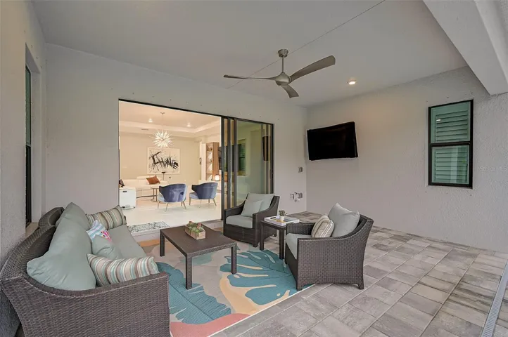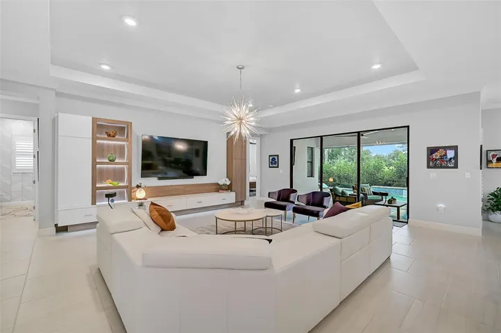 Step outside and this is where life happens—Extended Lanai, ready for your outdoor kitchen (fully plumbed incl. water) ++ 31-ft Heated, Saltwater Pool with Sunshelf , Bubblers & Fountains. Coffee in the morning, cocktails at sunset… You get the idea.