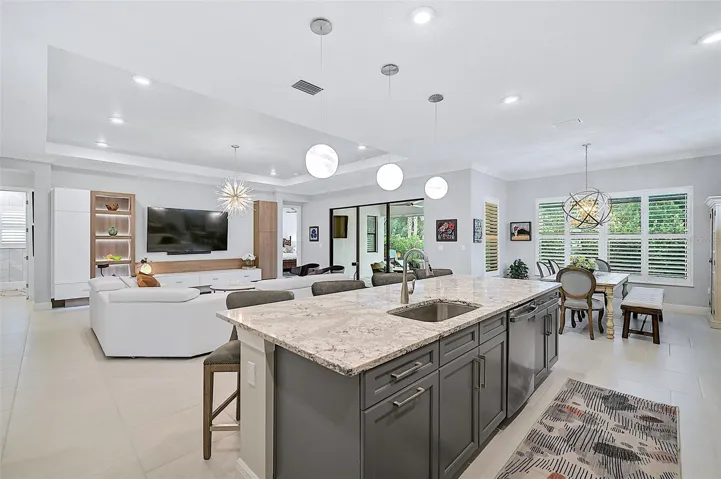 3-Car Extended Garage (over 700 sq Ft… for all your toys & Golf Cart), a Laundry Room Designed for Storage, and a deep Blanco Sink that can handle real life.