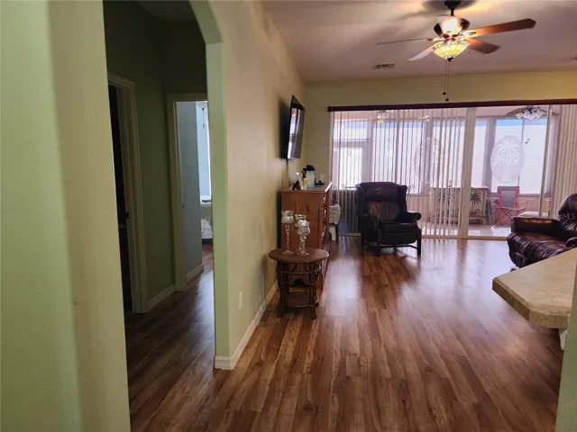 This model home offers a spacious, open floor plan with cathedral ceilings, wood laminate flooring, and plenty of natural light. The kitchen