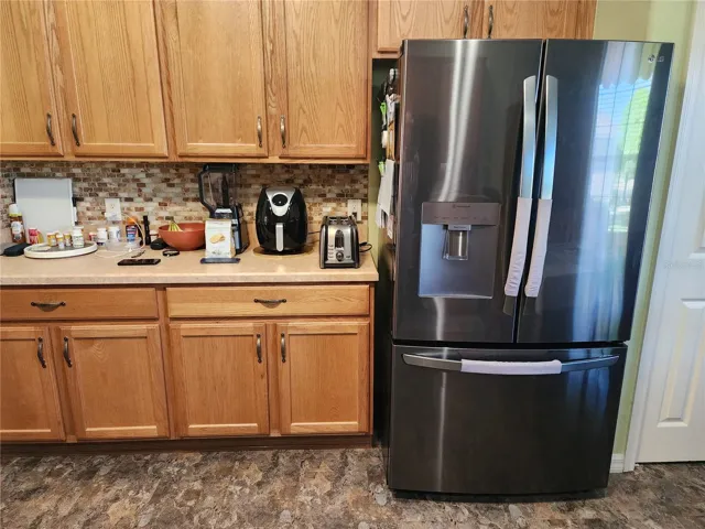 includes wood cabinetry, laminate counters, a breakfast bar, modern appliances, and an eat-in kitchen. The primary suite features a large bathroom with double vanities, two walk-in closets, and a tiled shower. Enjoy a private backyard view from the enclosed lanai. Recent upgrades include a 2024 roof, 2024 air conditioner motor upgrade and water softener. Located in SummerGlen, a 55+ community, homeowners have access to amenities such as a heated pool, spa, fitness center, sports courts, pickleball courts, tennis courts, clubs, dog park, RV storage and optional golf privileges. HOA dues cover Wi-Fi, cable, lawn care, trash, facility access with a 30 dollar monthly credit to use at the restaurant. Some furniture available to be purchased if desired. The back yard beautifully landscaped, and large common area in rear, ensures comfortable neighborly spacing. Enclosed Florida Room at rear of property, overlooking the beautifully landscaped gardens. A very well-maintained and clean home, seller has replacement home and can move at short notice.