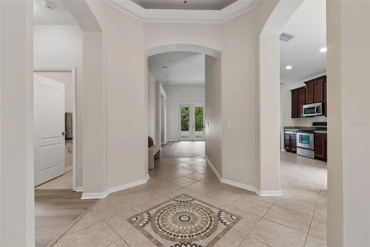 Step inside to a stunning entryway with a unique circular architectural design that sets the tone for the rest of the home. Just off the entrance, you’ll find a versatile front room with double doors—ideal as a 4th bedroom, home office, study, playroom, or creative studio (NO CLOSET).
