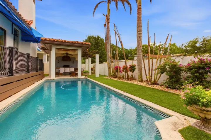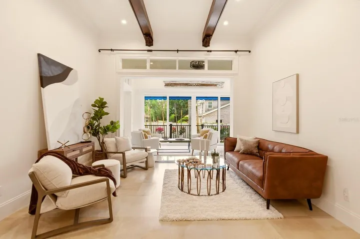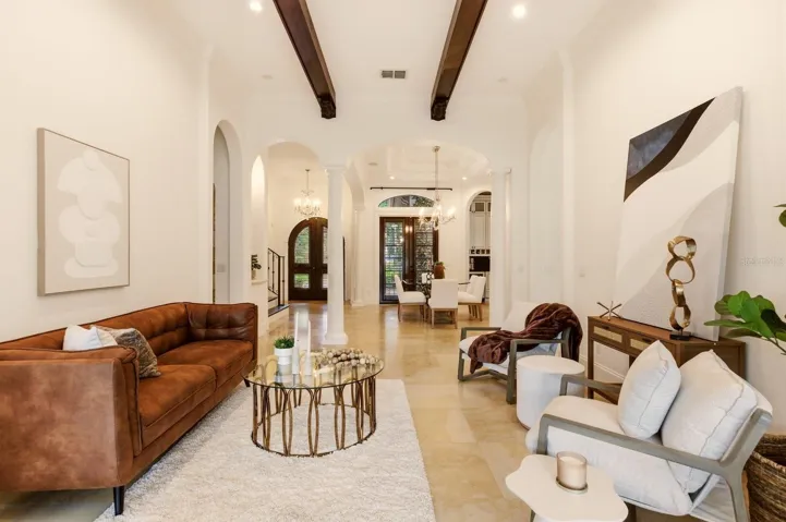 Welcome to your private slice of paradise, perfectly positioned on a charming brick-lined street in the heart of historic Winter Park. This custom-built estate exudes casual elegance from the moment you step through the grand double door entry, where soaring 12-foot ceilings, rich architectural details, and exceptional craftsmanship immediately set the tone. Thoughtfully designed with a well-balanced and highly functional floor plan, the home offers a seamless blend of formal and informal living spaces ideal for both everyday living and elevated entertaining. At the heart of the home, the pristine chef’s kitchen opens effortlessly to the family room and is outfitted with a built-in Thermador French door refrigerator, custom lighted cabinetry, granite countertops, a six-burner gas range with pot filler, double ovens with warming drawer, and an oversized island designed for gathering. A beautifully appointed butler’s pantry with wine fridge and wet bar creates the perfect transition to the formal dining space. Tucked away for privacy, a dedicated home office or library offers a quiet retreat for work or study. The first-floor primary suite is a true sanctuary, featuring intricate ceiling detail, expansive windows, and private French door access to the outdoor living space. The spa-inspired primary bath includes a jetted tub, dual vanities, and two oversized walk-in closets. Upstairs, three generously sized secondary bedrooms and two additional baths—including a private en suite—provide comfortable accommodations, while a charming Juliet balcony offers picturesque views of the tree-lined street below. Step outside to an exceptional outdoor living experience designed for year-round enjoyment. The covered lanai features a fully equipped summer kitchen with built-in grill, custom copper hood, and beverage fridge for the warmest Florida days. The saltwater pool creates a resort-style setting, surrounded by lush landscaping and enhanced by upgraded lighting and smart technology. This meticulously maintained home has been extensively upgraded, including new HVAC systems for both levels, on-demand water heater, whole-house surge protection, updated LED lighting with dimmer controls, smart home integrations for pool, irrigation, security, and climate, as well as complete interior and exterior repainting with premium finishes. High-end reclaimed maple and beech wood flooring has been installed and is complemented by refined architectural details such as curved archways, custom millwork, and elevated designer fixtures. Additional highlights include a newly created wine room, epoxy-coated garage flooring, central vacuum system, and enhanced exterior features with added awnings and detailed craftsmanship. Situated on a gorgeous lot with added privacy and with garage doors thoughtfully positioned away from the street, this home offers both presence and practicality. Just a short stroll to Lake Mizell and minutes from the renowned dining, shopping, and cultural experiences of Park Avenue, this exceptional property combines timeless design, modern upgrades, and an unbeatable location.