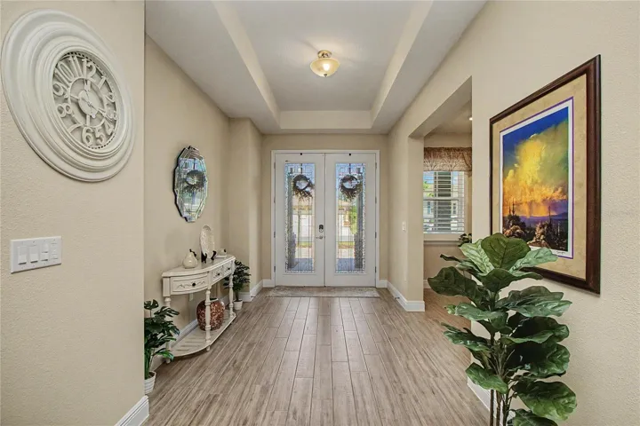Fully Turnkey. Four years owned, four months lived in— almost untouched and ready. —This is not a furnished home. This is a fully equipped life, handed to you on arrival.— Every room is staged with high-end furniture. Closets are stocked. Cabinets are filled. Cookware, linens, cleaning supplies, soap, shampoo—even toothbrushes—the kind of detail that takes months to accumulate. You walk in, you live. That is the entire proposition. — The home commands attention—Soaring Ceilings — Oversized Windows with Shutters throughout— $40,000 Builder Upgrade Ceramic Tiled Floors throughout—Two sets of French Doors that flood the space with natural light. The kitchen is further elevated with— Smart Refrigerator with Integrated Display (2023)—Double Wall Ovens— Commercial-Grade Cooktop—Vented Hood with built-in warming functionality —Granite Countertops— a Large Island and a Walk-in Pantry. The primary suite is generous by any standard—Dual Walk-in Closets— En Suite Spa-style Bath with Dual Vanities and a decorative, Floor-to-Ceiling Tiled Shower with Built-in Bench. Secondary bedrooms follow the same standard—spacious and well-appointed. The office features a Murphy bed/desk, offering flexibility for guests or workspace. — The garage is oversized and built for real use. Comes with a separate Golf Cart Garage —Golf Cart can be sold to interested buyers! — Gutters with Guards (2024)— Smart Home with SimpliSafe Security System (2023)—The Screened Lanai is expansive, offering a Full Outdoor Furniture Suite, Fire Pit Table— Movable Bar—designed for entertaining. Even the front porch is furnished. —Additionally, A One-Year Home Warranty is also included, providing an extra layer of peace of mind alongside the home’s exceptional condition and minimal use. —Located within one of Central Florida’s most celebrated 55+ gated, resort-style communities—featuring golf, clubhouse, fitness center, trails, pickleball, tennis, pools, dog park, dining, and a full social calendar that needs its own calendar. Golf-cart access to groceries, dining, and nearby amenities— Ideal for full-time living or a low-maintenance seasonal retreat— A true move-in-ready home with exceptional value in convenience, scale, and lifestyle.