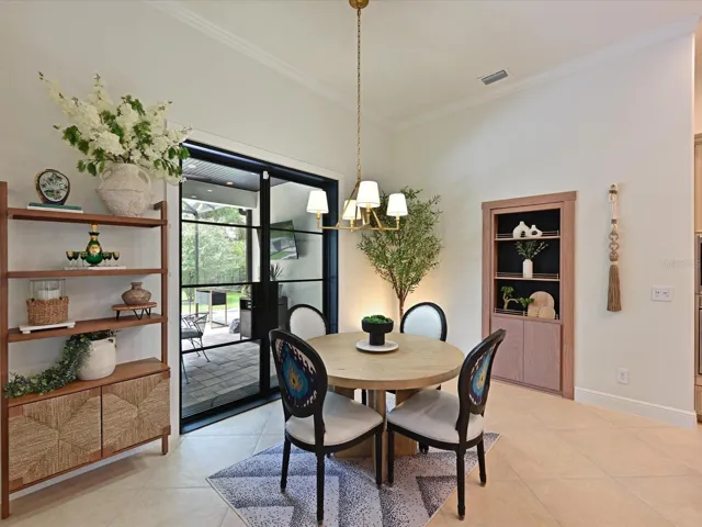 Beautiful Winding River home situated on a private 0.74 acre lot. The large backyard is shaded by majestic oak trees, creating a peaceful setting ideal for relaxing or entertaining around the fire pit. Features include artificial turf with a soccer practice area, metal fenced side yard for pets, a new storage shed on a slab, and a paver walkway connecting the lanai to the yard. Oversized lanai has a 48×10 vaulted cage plus expansive under roof lanai space, flooring is brick pavers. The lanai is also equipped with a water-misting system, perfect for cooling off on warm Florida days.This home is loaded with upgrades and thoughtful enhancements, tray ceilings, porcelain tile floors, crown molding, a Rachio smart irrigation controller, EcoFlow battery backup system, whole house water filter, plus a security system. Oversized 3 car garage features its own mini-split A/C system. and a 3rd garage door that opens to the side yard. A buried, owned propane tank, services the cooktop and tankless water heater. Striking iron double front doors with glass panels create a grand entrance, with additional matching doors throughout the home, including the primary suite, kitchen nook, and game room/office, all opening to outdoor living spaces. A set of antique French wooden doors adds a unique and elegant touch at the primary bedroom entrance.