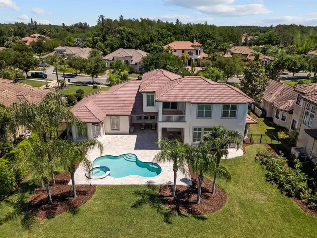 A rare opportunity to own a custom home on one of the premier lake front lots on Lake Merry Water in the gated community of Ladera. This 5-bedroom, 4.5 bath home with two large offices, bonus room, extended lanai, heated pool and spa and 3 car garage is just minutes to everything. Easy access to Tampa, the airport, schools/USF, hospitals, shopping and restaurants, yet far enough away that all you hear, feel and see is the quiet tranquility of living on a beautiful lake with park-like settings in a gated community. Inviting and open home with gorgeous views of Lake Merry Water from nearly every location in the home. Lake Merry Water is a bird watchers paradise with a community dock and only electric motors allowed. Oversized paver driveway for entertaining. 2 downstairs bedroom/bath suites equipped with walk in showers and large closets. First floor master bedroom, with spacious master bath and oversized dual-head shower. Custom California Closets build out completes the large walk in master closet. Gourmet Kitchen with 42″ cabinetry, updated appliances with drop in 6 burner gas range and designer hood. Kitchen opens to large family room surrounded by views of the pool area and lake. Updated lighting fixtures and window shutters throughout. 2nd floor with huge bonus area, 2 bedrooms with window seats, 1 full bath and a spacious balcony for evening sunsets and moonlit nights looking out over the water. Zoned for Steinbrenner High, Buchanan Middle and Lutz K-8.