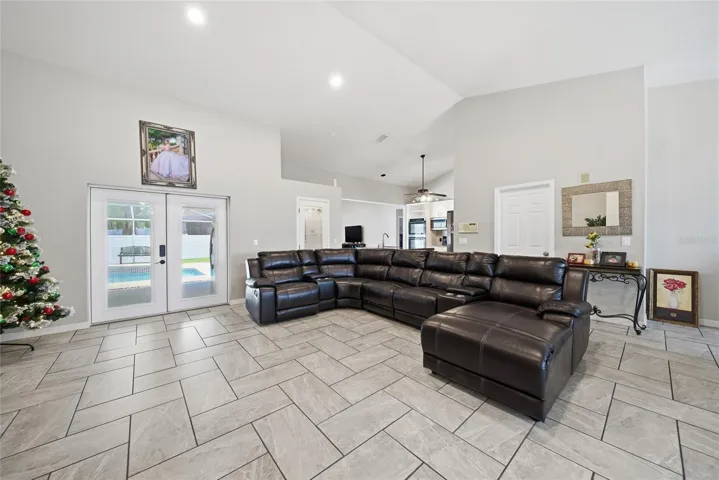 Welcome to Bloomingdale! Tucked at the end of a quiet cul-de-sac, this 4-bedroom, 3-bath pool home with an in-suite bonus room delivers the kind of space, updates, and bones that make buyers stop scrolling. With a brand new roof (December 2025), A/C (2020), updated appliances (2020), pool pump (2020), sprinkler system (2020), and water heater (4 years old), the big-ticket items are already handled — so you can move in and enjoy. From the moment you step through the ornate entry, soaring ceilings and an open layout set the tone for a home that lives much larger than it looks. The kitchen is the kind of space home chefs dream about — white shaker cabinetry, dual-surface counters with a dark granite island, subway tile backsplash, professional range hood, double wall oven, and a full suite of stainless steel appliances. Whether it’s Sunday brunch or a holiday feast, this kitchen handles it all without breaking a sweat.