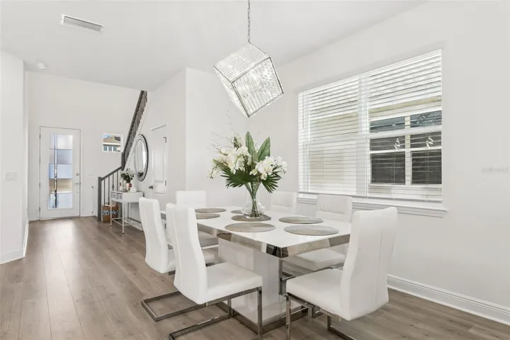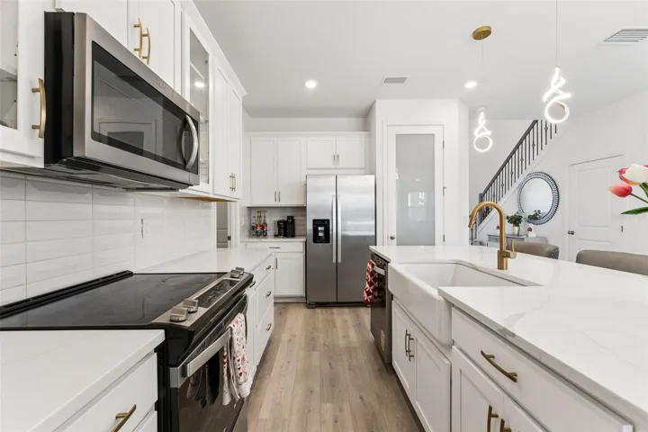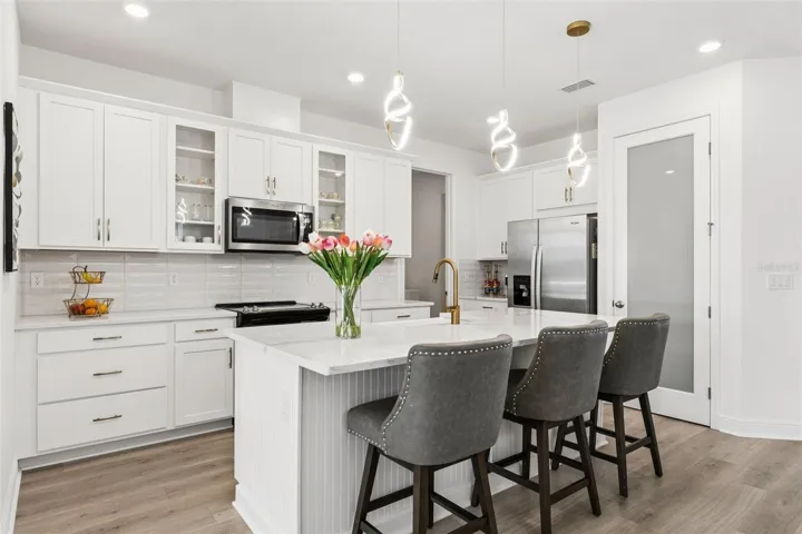 Skip the wait. This Magnolia floorplan is move-in ready with over $90,000 in upgrades: quartz counters, farmhouse sink, upgraded cabinetry, designer tile work, and custom finishes throughout. No builder timelines. No out-of-pocket add-ons. Just a finished home in close proximity the Hills of Minneola recreation center. Dream Finders’ Elevation B exterior with stone detailing and paver driveway sets the tone before you walk in. Inside, 8′ doors, open stair railing, and upgraded flooring carry through the main living areas and loft. The kitchen alone tells the story: gold hardware, glass-front cabinetry, sculptural pendant lights, a farmhouse sink, and a quartz island with custom beadboard detail. The primary bath continues it with floor-to-ceiling marble tile, a frameless glass shower, and a double vanity that flows directly into the walk-in closet. These are the finishes buyers spec out on a new build and wait eight months for. Here, they’re already done. This is the shortcut to new construction without the compromises. Hills of Minneola includes a community pool, clubhouse, parks, and playgrounds, with quick access to the Florida Turnpike, Clermont, Winter Garden, and Orlando.