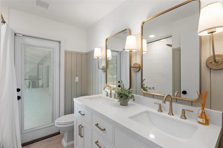 The primary suite is a private retreat with generous closet space and a fully remodeled en-suite bathroom boasting dual vanities, modern fixtures, and a walk-in shower. Three additional bedrooms give flexibility for guests, family, or a home office.