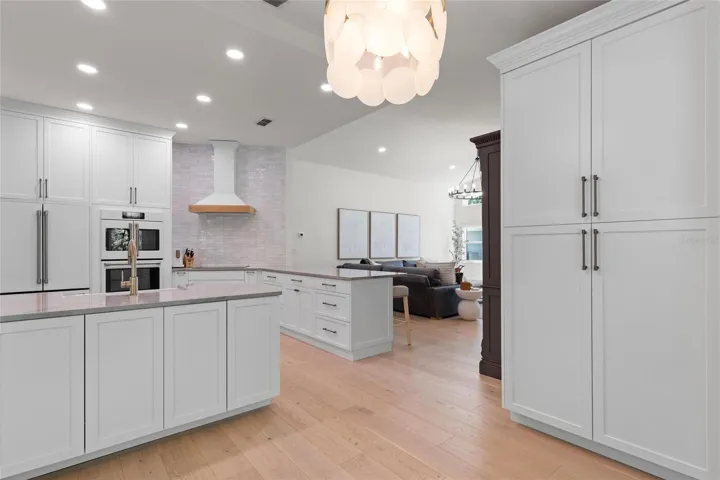 Step inside to discover a light-filled open floor plan with soaring vaulted ceilings and a desirable split-bedroom layout, providing both privacy and comfort. The heart of the home is the completely updated kitchen, featuring custom hardwood cabinetry, sleek quartzite countertops, GE Cafe’ smart appliances, and a spacious breakfast bar that seamlessly connects to the family room—ideal for entertaining and everyday living.