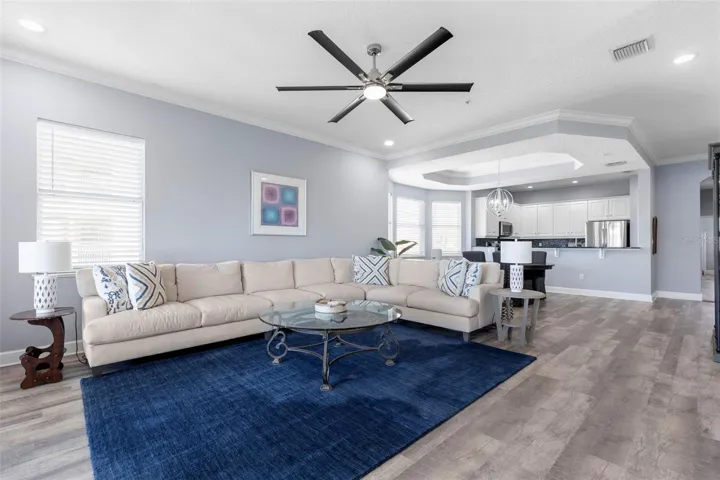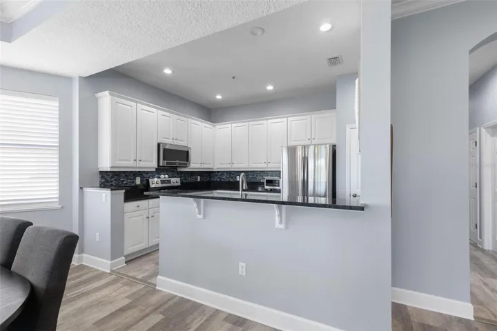 Rare Hammock villa with private 2-car garage, beautifully updated and move-in ready. This light-filled 3-bedroom, 2-bath residence with an additional half bath offers 1,859 square feet and lives like a home with 10’ ceilings, private elevator access, and an exclusive setting of only two residences per floor (just six in the building). Recent updates include luxury vinyl plank flooring throughout, a completely repainted interior, new stainless steel kitchen appliances, new ceiling fans, updated faucets and plumbing fixtures, all new toilets, new garbage disposal, and a WiFi-enabled smart thermostat. The living area features a custom dry bar with wine fridge, and the home includes draperies and wood blinds. The private 2-car garage is enhanced with an epoxy-coated floor, a rare and highly desirable feature in the Hammock.