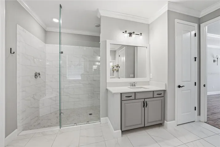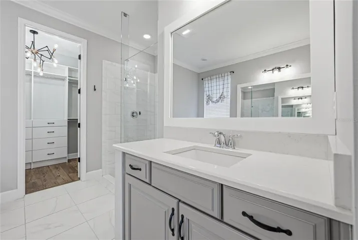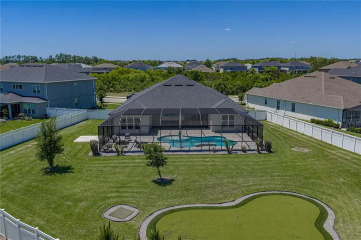 Resort-style Watergrass amenities, a backyard that feels like a secluded poolside oasis, and an expansive 4 bedroom 3.5 bath, 3 car garage home with a flexible floor plan awaits its newest owners inside the gated community of Bradbury. Arrive to a welcoming landscape, a craftsman-style exterior, and an inviting front porch, accented by tongue-and-groove wood ceilings. When you step inside, an elevated, spacious layout unfolds with crown molding, upgraded lighting, decorative wall moldings, and personal touches that make this house truly feel like a home. The sweeping open concept great room combines a generous living room, the gourmet kitchen, and an eat-in dinette with a built-in buffet- all overlooking the outdoor entertaining area and paver pool deck through recessed sliding doors. The kitchen features stainless steel appliances, including a double oven, a central island with a farmhouse sink and breakfast bar seating, pendant lights, a walk-in pantry with wooden shelving, a butler’s pantry, and a timeless backsplash. An oversized formal dining room, a dedicated office, a half guest bathroom, and a large bonus room/media room add additional convenience and usable space for easy everyday living. The primary suite is separated from the secondary bedrooms for added privacy and offers backyard views, a large walk-in closet with built-in organizers, and a spa-like ensuite bathroom with two separate vanities, a customized walk-in shower, and a soaking tub. Bedrooms 2 and 3 share a full jack-and-jill style bathroom in between. The fourth bedroom is secluded near the bonus room and the third full bathroom, creating the ultimate guest suite. Outdoor living never looked so peaceful and fun! The tongue-and-groove covered back patio houses the open-air bar, and it opens beautifully to the heated saltwater pool. This pool was thoughtfully designed to offer waterfall accents, a swim-up table, and a built-in lounge chair, all overlooking the privacy-fenced yard. A playground and putting green are comfortably placed in the yard, and there is still plenty of open, lush lawn to enjoy. Living here means having all of these amenities at your fingertips, while still being just a short stroll to community pools, playgrounds, dog parks, clubhouses, sports courts, and more. Call us today for your private showing of a spectacular home you do not want to miss!