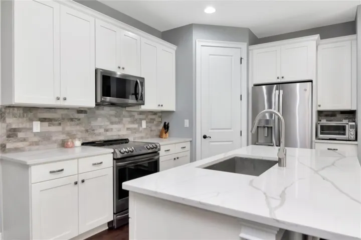 Step into an inviting foyer that opens to a seamless dining and family room combination, perfectly suited for both everyday living and entertaining. The well-appointed kitchen features quartz countertops, maple cabinetry, a breakfast bar, designer backsplash, and stainless-steel appliances. The first level includes a versatile den with a Murphy bed, ideal for guests or a home office, along with a convenient half bath. Enjoy Florida living outdoors on your covered patio, perfect for morning coffee or a private grilling area.
