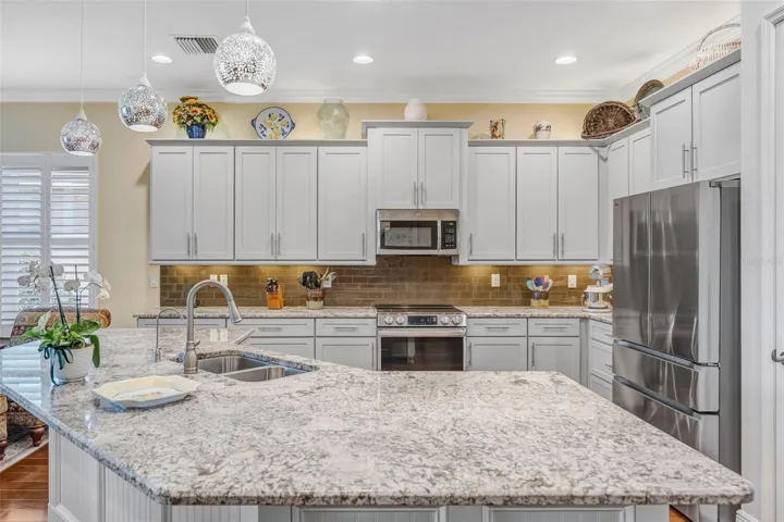 Welcome to the highly sought-after Chandon floorplan by GL Homes, located in the prestigious community of The Ridge at Wiregrass Ranch—where luxury living meets resort-style amenities in the heart of Wesley Chapel. The Chandon features nearly 2500sf of living space with 4 bedrooms, 3 bathrooms and open main living area. This spacious and thoughtfully designed home offers the perfect blend of elegance and functionality, featuring an open-concept layout ideal for both everyday living and entertaining. The Chandon floorplan is known for its generous living spaces, including a chef-inspired kitchen with premium finishes, a large center island, and seamless flow into the expansive great room and dining areas. The owner’s suite serves as a private retreat with a spa-like bath and oversized his/hers walk-in California closets. Three additional bedrooms and flexible living spaces provide versatility for guests, a home office, or multi-generational living. The well-appointed kitchen is a cooks delight featuring gorgeous Granite countertops, full Stainless Steel appliance package which includes a top-of-the-line LG Induction Range with true Convection Oven, Reverse Osmosis filter at the double-side stainless steel sink. Notice the custom trim touches on the kitchen island. The Great Room features CUSTOM COFFERED CEILINGS for a truly elegant look and feel. Step outside and enjoy Florida living at its finest with a covered lanai with views of the pond and conservation—perfect for relaxing evenings or hosting gatherings year-round. Conveniently located just minutes from top-rated schools, shopping, dining, and entertainment—including Wiregrass Mall and Tampa Premium Outlets—this community offers the perfect balance of luxury, convenience, and lifestyle. The Ridge is a luxury community in Wesley Chapel centrally located on SR 56. Amenities at The Ridge include an 11,500 sf indoor clubhouse located on 5.5-acres. The clubhouse features an event room, an indoor sports complex, game room, movie theatre, fitness center, indoor/outdoor bars and kitchen. Outdoors boasts 4 lighted clay tennis courts, basketball, sand volleyball, resort pool with beach entry, lap pool, fire pit, and water play area. The community is minutes from the Shoppes at Wiregrass, Tampa Premium Outlets, 3 local hospitals, restaurants and Top-Rated Area Schools. Call today for your opportunity to view this home. Experience the best of Wesley Chapel living—where every day feels like a vacation.