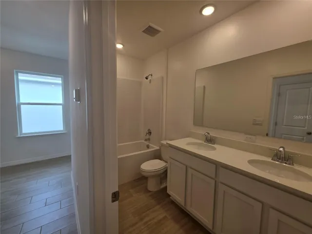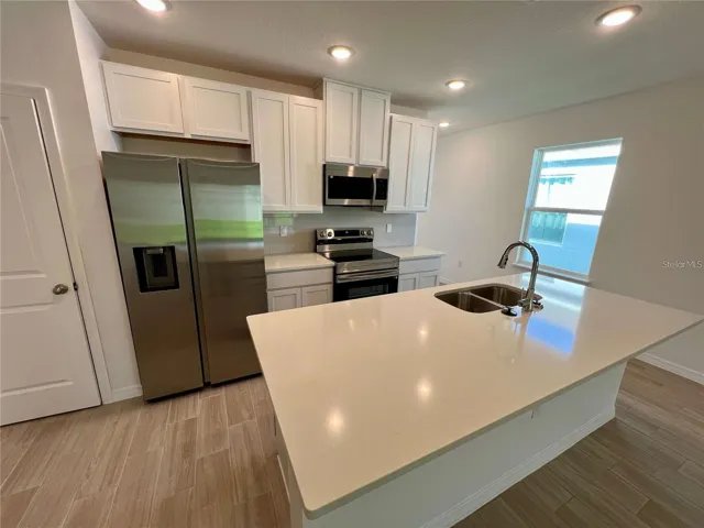 Welcome to this brand new four bedroom, two bathroom home designed with both comfort and style in mind. From the moment you enter, you’re welcomed by a thoughtfully designed floor plan with stylish tile flooring throughout the main living area. At the heart of the home, the open-concept kitchen and great room provide an inviting setting for everyday living and entertaining. The kitchen shines with stainless steel appliances, breakfast bar, stylish tile backsplash, and pantry. The great room is bright and airy, ideal for relaxing or gathering. Tucked away at the rear of the home, the private primary suite serves as a peaceful retreat, complete with a generous walk-in closet and a beautifully appointed en-suite bath featuring a tiled shower. There are three other ample sized bedrooms to fit your needs. A well-equipped laundry room with cabinets, washer, and dryer adds everyday convenience. Step out to our covered patio to enjoy your backyard. Modern smart home features—including a Ring Video Doorbell, smart thermostat, and keyless entry—offer added ease and security. Take advantage of the amenities in Hammock Reserve including resort style pool, play area and walking trails. Come experience it for yourself—schedule your private tour today!