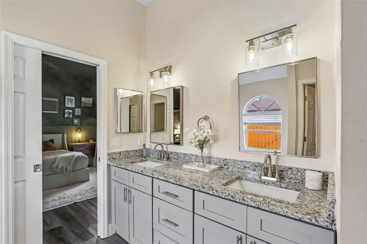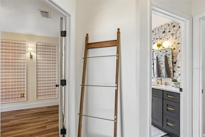 Absolutely stunning remodeled and updated Pool home on a corner lot in the gated community of Oakstead. This home is like no other with truly bespoke quality finishes and upgrades more likely to be found in homes over $2 million! Step through the front door onto the luxury vinyl plank flooring that goes through the entire house. Off to your right is the formal dining room and formal living room with vaulted ceilings and wainscoting. The kitchen is gorgeous with custom cabinetry, a high-end Aga induction range with beautiful brass knobs that complement the brass cabinet handles and sconces. The range hood is custom made and finished in a beautiful plaster. The eat-in kitchen with a custom built banquette is the perfect spot for warm and cozy casual dinners. The kitchen overlooks the family room with a fireplace finished with shiplap and flanked by two built-in cabinets, a lovely chandelier, and a wood beamed ceiling. Off the family room is the lanai that overlooks the nearly brand new screened in pool. The primary bedroom has a view of the pool, a large bathroom with a shower and separate soaking tub and a walk-in closet with built-in cabinetry. The 4th bedroom has double French doors and is outfitted with built-in bookcases and a desk. Additional upgrades include a new roof and air conditioner in 2023. This home is pure perfection!
