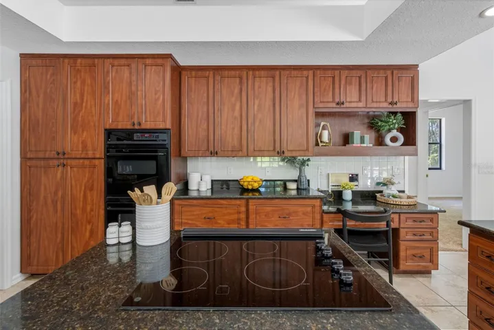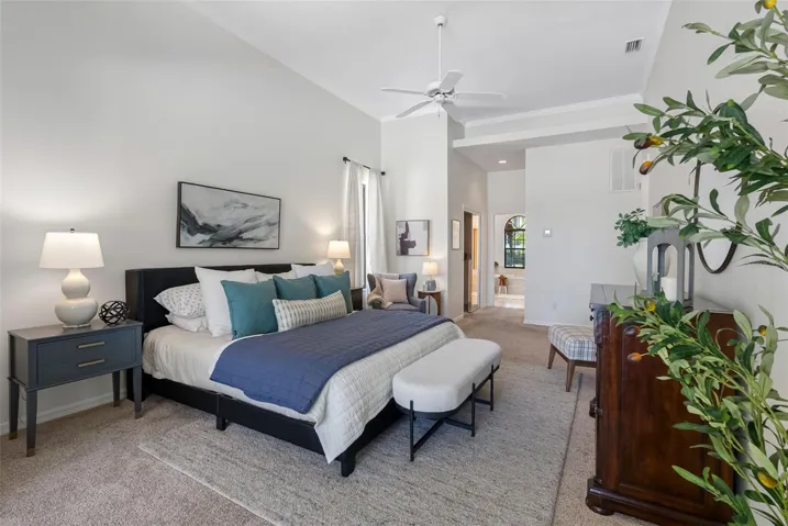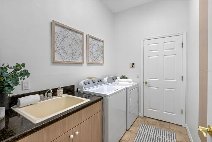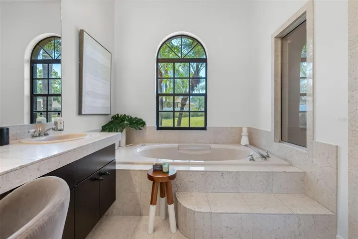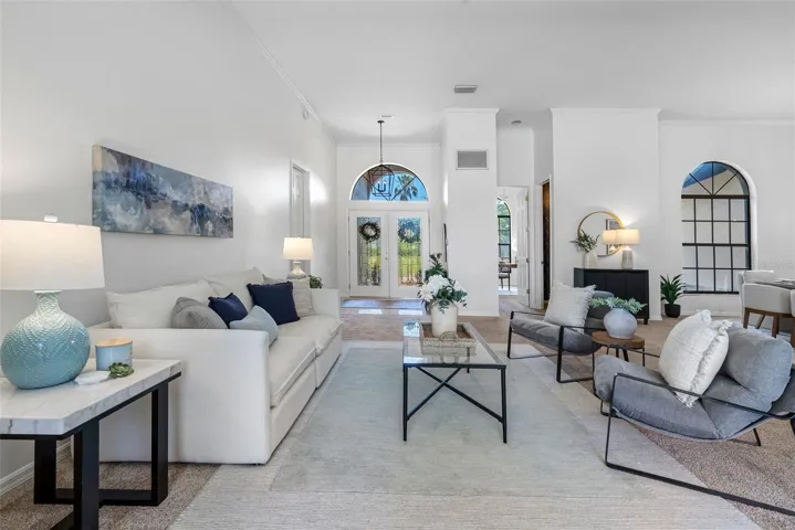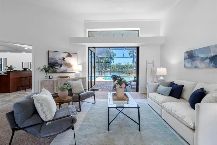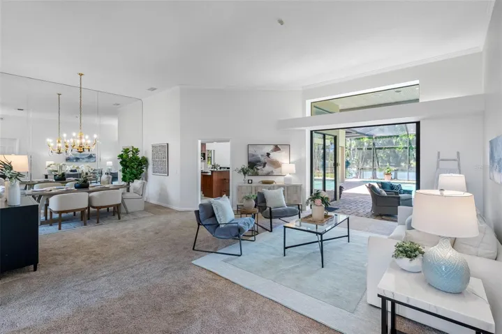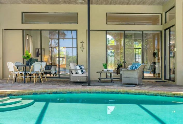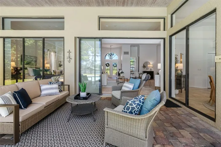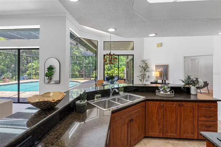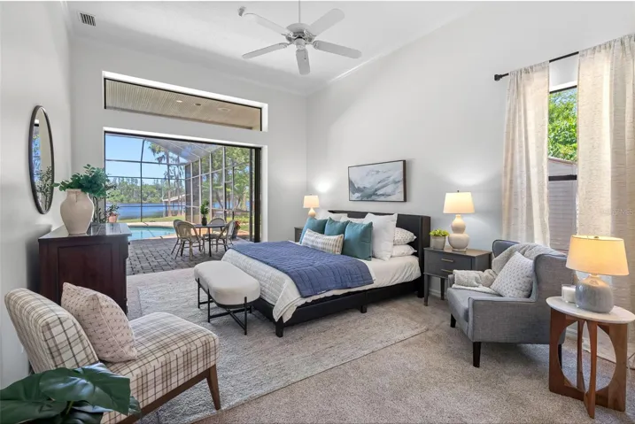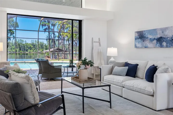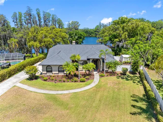 The front of the home showcases formal living and dining rooms, a private office, and a convenient guest half bath. Designed for seamless indoor-outdoor living, pocket sliding doors in the living and family rooms open fully to an expansive covered lanai and screened pool area—perfect for gatherings. The spacious primary suite is privately located and features direct access to the lanai and pool, along with tranquil lake views. The en-suite bath offers dual vanities, a walk-in shower, garden tub, and two walk-in closets. The kitchen overlooks the breakfast nook and family room, allowing you to enjoy peaceful nature views while cooking. The family room is generously sized, featuring a fireplace and new carpet. Two secondary bedrooms and a full bath with double vanity and tub/shower combo are located off the kitchen, while a separate guest suite with new carpet—ideal as an in-law or pool suite—offers lake views and a walk-in shower with direct access to the pool. Dock and lift will need some attention and are not warranted. Additional highlights include a well-fed irrigation system for year-round lush landscaping, a laundry room with utility sink and cabinetry, and numerous recent updates: pool resurfaced and screens replaced (March 2026), interior paint (April 2026), and roof (October 2017). Conveniently located near top-rated schools, shopping, dining, medical facilities, and major roadways, with easy access to downtown Tampa, Tampa International Airport, International Plaza, and professional sports venues. Enjoy the rare combination of privacy, natural beauty, and everyday convenience—this is lakefront living at its finest.
