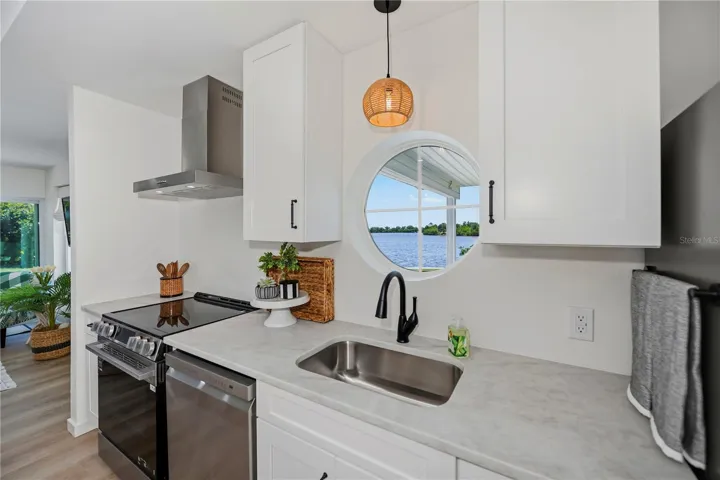 Step inside to a spacious, light-filled living room with seamless indoor-outdoor flow through double sliders that open to capture magical Florida sunsets overlooking the three dimensional sparkling saltwater vistas from your own covered patio. The kitchen dazzles with updated stainless appliances, elegant quartz counters, raised paneled cabinetry including extra open shelved coffee/wine area, waterfall quartz breakfast bar and top-tier lighting and decorator hardware—ideal for entertaining friends and family. Luxury vinyl flooring creates a wonderful coastal vibe throughout with a side entry mudroom that boasts a wine cooler/beverage area and adds another gorgeous serving/storage area. Style, Comfort and move in ready!