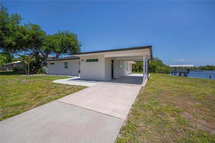 Experience the ultimate in SERENE saltwater lake living with one of a kind breathtaking panoramic Lake Views views with quick GULF ACCESS in this beautifully renovated 2-bedroom, 2-bath home, perfectly nestled on an OVERSIZED lot almost HALF AN ACRE with no HOA! Featuring a brand-new 108-foot FULL CONCRETE POURED SEAWALL 2023 (100K Value), this stunning residence sits adjacent to the highly sought-after, newly built Springview Estates and their spectacular Key West-style homes. Looking beyond the sparkling water is a natural island adding an extra special chance to experience nature up close and personal. This 2-bedroom 2-bath home is a GEM for seasonal escapes, year-round living, or Airbnb, offering incredible flexibility including an opportunity for RV parking, maybe casita, or the perfect spot to add a pool—complete with ultimate privacy thanks to the adjacent neighboring Spring Lake Park, nature preserve, sidewalks, public boat ramp and scenic boardwalks. NEW ROOF 2023. NEW AC 2024.