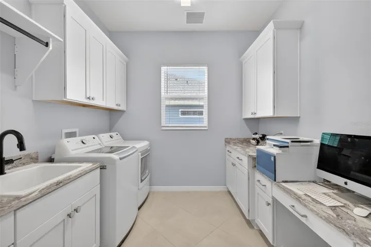 Expanded Premier Egret with stunning water views, ideally located between Eastport and Middleton. This 2,459 sq ft home sits on a premium lot overlooking a long pond, offering privacy and a peaceful setting away from road and recreation noise. Open floor plan with 10 foot ceilings and ceramic tile throughout (no carpet). Enjoy the oversized 52’ x 15’ east-facing lanai—perfect for relaxing or entertaining. Stretched 3-car garage (~900 sq ft) with epoxy floors provides space for cars, golf carts and storage. Paver driveway, professional landscaping, custom finished closets, attic stairs. Optional hot tub and safe. Available furnished or unfurnished. Closing after July 18. This water front home checks all the boxes!
