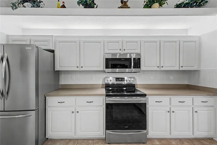 The home features a formal dining room with a beautiful chandelier, ideal for entertaining. The well-appointed kitchen includes newer stainless appliances, tile flooring, vaulted ceilings, plant shelves, breakfast bar, double sink, reverse osmosis system with dedicated faucet, and a closet pantry. Enjoy casual meals in the breakfast nook with large windows overlooking the spacious backyard. A nearby laundry room offers washer, dryer, utility sink, and shelving for convenience.