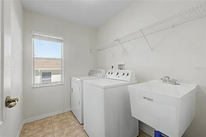 The split floor plan provides privacy, with two additional spacious bedrooms on the opposite wing. One bedroom features views of the backyard, while the other offers a window seat with storage, walk-in closet, desk space with extra outlets, and ceiling fan. The guest bathroom includes a tub/shower combo and direct access to the lanai, making it ideal for future pool use. Additional highlights include: