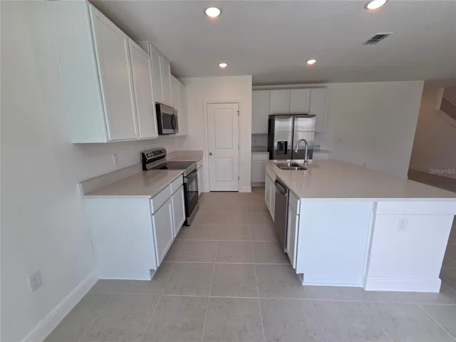 Stunning BRAND NEW two story home offer 4 bedroom, three bathrooms and loft in the Villamar community. No need to wait and build as this home is move in ready, now. From the moment you step inside, you’re greeted by a spacious foyer that flows effortlessly into the open-concept living areas. The main floor features upgraded tile flooring throughout, creating a clean, cohesive, and inviting space. At the heart of the home, the chef-inspired kitchen is designed to impress, showcasing stainless steel appliances, quartz countertops, and a side-by-side refrigerator. It opens seamlessly to the dining area and great room, making it perfect for both relaxed daily living and entertaining with ease. A convenient fourth bedroom and full bath on this level provide flexibility—ideal for guests or home office. Upstairs, a generous loft offers a versatile space for a media room, play area, or quiet retreat. The thoughtfully placed laundry room—complete with washer and dryer—is conveniently located near the secondary bedrooms. A full bath with a shower/tub combo serves this level with ease. The primary suite is your own private sanctuary, featuring a spa-like en-suite bath and an oversized walk-in closet designed for ultimate comfort and convenience. Enjoy the added benefits of modern Smart Home features, including a Ring Video Doorbell, Smart Thermostat, Keyless Entry Smart Door Lock, and DEAKO Switches—bringing both security and simplicity to your daily life. Head outside to find an open patio to lounge and enjoy the backyard. Take advantage of the community amenities inducing sparkling resort-style pool and playground. Don’t miss your chance to make this home yours – reach out today for more details or to arrange a visit.