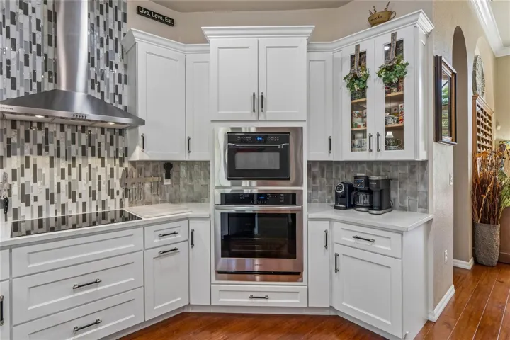 One or more photo(s) has been virtually staged. “HOME IS WHERE THE HEART IS” This Beautifully updated 4BR/3BA/3-car pool home with office in the gated golf course community of Silverthorn. Offering approximately 3,008 sq ft, this home features 12-ft ceilings, crown molding, and wood flooring throughout main living areas and bedrooms, with tile in baths. Renovated kitchen (2025) includes quartz countertops, wood cabinetry, and Samsung stainless appliances: wall oven, microwave/convection oven, induction cooktop, dishwasher, refrigerator, undercounter wine fridge, and sink. All baths feature granite countertops. Owner’s suite offers 2 walk-in closets, double vanities, garden tub, and large walk-through shower. Updates include new roof (2024), 5-ton A/C (2022), family room fireplace (2025), and pool heater/pump (2025). Enjoy a screened, self-cleaning pool, pavered outdoor spaces, outdoor fireplace, and preserve/fairway views. Smart features include Wi-Fi garage access, Wi-Fi irrigation, 4 PoE wired access points, Z-Wave/Zigbee switches, Hubitat controller, and media/network room with whole-home speaker wiring. Silverthorn amenities include clubhouse, golf, fitness center, pool, tennis, pickleball, playground, and more. HOA includes Spectrum 500MB internet and cable. Close to Suncoast Parkway, shopping, and dining.