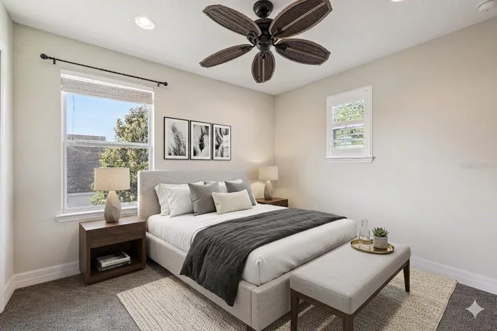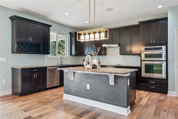 Inside, every detail reflects thoughtful upgrades and timeless design. Enjoy rich wood flooring, custom wainscoting, and an abundance of natural and ambient light. The kitchen is both stylish and functional, offering granite countertops, stainless steel appliances, and modern finishes. The home also features plantation shutters, LED lighting, and a built-in speaker system throughout the main living areas and primary suite. The spa-like primary bathroom includes a frameless glass shower, adding a touch of everyday luxury.
